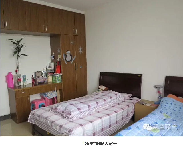 而當(dāng)大家來(lái)到最期待的員工寢室時(shí),同學(xué)們的反應(yīng)也是在吸管妞的意料之中。每個(gè)房間都配有干凈整潔的洗手間、寬敞明亮的洗衣陽(yáng)臺(tái),并配有各種家具,每個(gè)房間安裝有空調(diào),24小時(shí)供應(yīng)熱水洗澡和純凈飲用系統(tǒng)。驚羨之聲隨處可聽(tīng)。當(dāng)吸管妞和同學(xué)們說(shuō),我們寢室的衛(wèi)生工作都是由清潔阿姨打掃的,連垃圾桶都不用倒!他們紛紛自薦:我要來(lái)“雙童”實(shí)習(xí)!