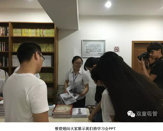 來(lái)到九樓,吸管妞領(lǐng)著大家來(lái)到了閱覽室,同學(xué)們立即被桌子上厚厚一大疊的PPT裝訂材料所吸引。原來(lái),這就是我們“雙童”每期學(xué)習(xí)會(huì)的學(xué)習(xí)PPT材料呢!不論是哪個(gè)講師的PPT,都是一樣的外觀標(biāo)準(zhǔn),這也是我們精細(xì)化管理的體現(xiàn)哦!