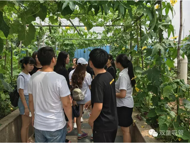 來(lái)到屋頂菜園時(shí),看到這么多新鮮的蔬菜瓜果,大家都淡定不起來(lái)了呢!吸管妞向大伙介紹了“空中菜園”的總面積有近800平方米,每個(gè)種植區(qū)的土層均有1米2深,看到這里大家紛紛開(kāi)始敬佩樓總對(duì)工廠的設(shè)計(jì)。