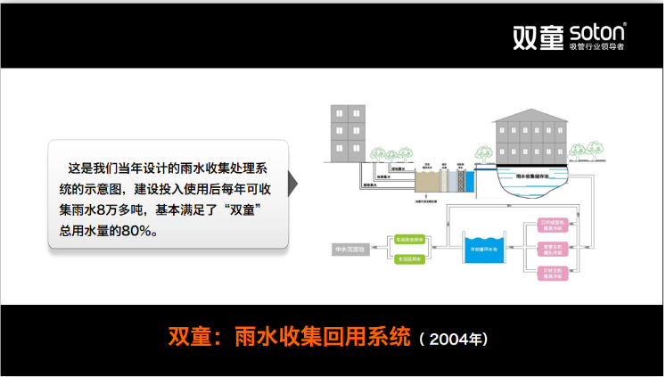 2002年開始,“雙童”引入日本節(jié)能降耗經營理念,投入2000多萬建成雨水收集回用系統(tǒng)、廢水處理系統(tǒng)、垃圾分揀減量化系統(tǒng)等節(jié)能降耗的綠色工廠設施。在每年節(jié)省大量支出的同時也成為江浙民營企業(yè)中最早實施“碳中和、零排放”的制造企業(yè)。