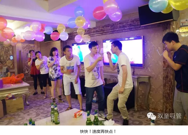 酒足飯飽,開(kāi)啟游戲環(huán)節(jié)!后勤部門為壽星準(zhǔn)備的小游戲,大家可是很踴躍地參與呢!瞧!壽星們被分為四個(gè)隊(duì)伍,嘴叼著吸管傳杯子,用時(shí)最短的隊(duì)伍還有豐厚的獎(jiǎng)品呢!