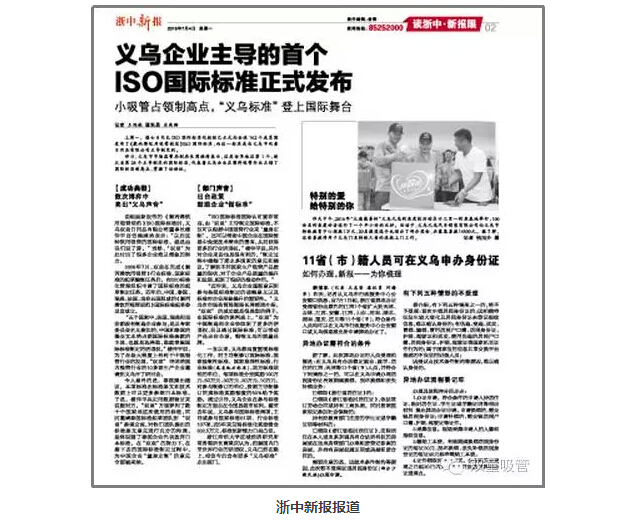 【《浙中新報》大版面深度報道!】由義烏企業(yè)“雙童”主導的首個ISO國際標準正式向全球162個成員國發(fā)布!