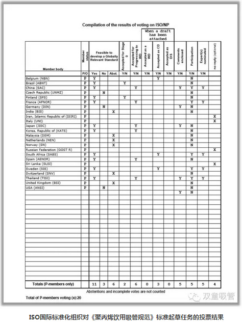20087月,雙童在完成《聚丙烯飲用吸管》行業(yè)標準、國家標準的起草編制任務(wù)后,向ISO標準化管理組織申請了國際標準的起草制定任務(wù)。四年后,中國、泰國、瑞典、法國、南非五國組成的《聚丙烯飲用吸管規(guī)范》國際標準起草委員會成立。