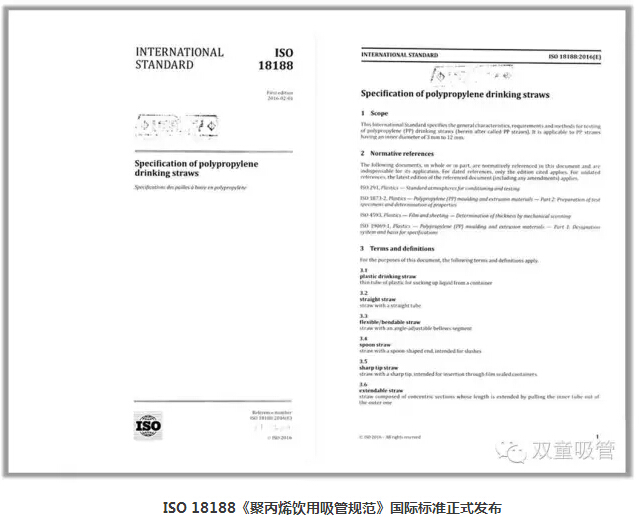上周一,瑞士日內(nèi)瓦ISO國際標準化組織已正式向全球162個成員國發(fā)布了《聚丙烯飲用吸管規(guī)范》ISO國際標準,而這一標準是由義烏市雙童日用品有限公司主導制定的。