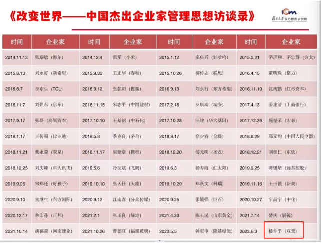 近期,憑借深厚的管理思想、實踐認知和實戰(zhàn)經驗,“雙童”樓仲平被復旦大學東方管理研究院收錄到《改變世界-中國杰出企業(yè)家管理思想》的50位中國優(yōu)秀企業(yè)家之一。