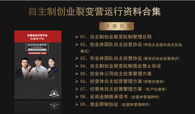 3、交付自主制創(chuàng)業(yè)裂變模式的各項規(guī)則、文本、合同等書面資料