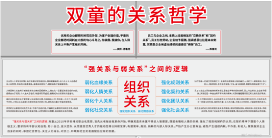 在講到到雙童“家文化”的時(shí)候,“雙童”的組織關(guān)系如何規(guī)避血緣關(guān)系、保持企業(yè)內(nèi)部的清廉成了來(lái)訪者好奇的地方??偨?jīng)理李二橋告訴大家,正是由于“家文化”的特殊性,“雙童”的組織關(guān)系特別注意強(qiáng)化規(guī)則關(guān)系、契約關(guān)系、團(tuán)隊(duì)關(guān)系和社會(huì)關(guān)系!同時(shí)在2011年明確提出組織關(guān)系的三原則: