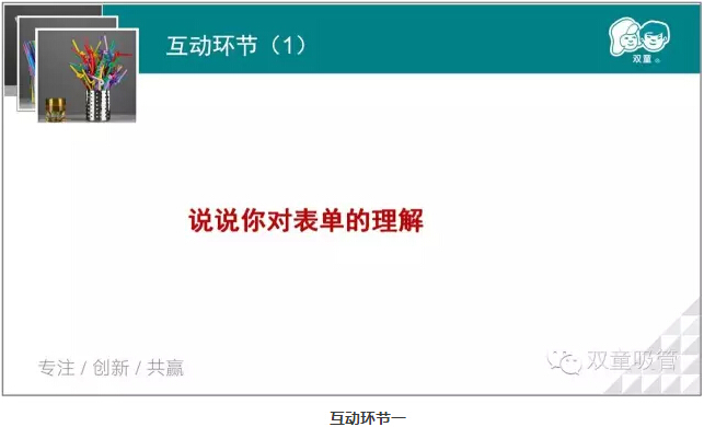 學習會當然少不了互動啦!這不,一開場互動就開始啦!說說你對表單的理解?話題剛落,童鞋們就爭先恐后地回答問題啦!表單是結算的依據(jù)、表單可以記錄信息...... 大家的答案都層出不窮,不過很有道理呢!