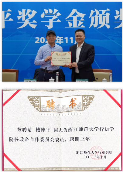 浙師大行知學(xué)院黨委書記劉星喜為樓仲平頒發(fā)了