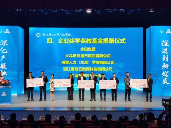 本次峰會還設(shè)立企業(yè)獎學(xué)獎教基金共1800萬元,其中,義烏市雙童日用品有限公司設(shè)立基金300萬元,為浙江師范大學(xué)行知學(xué)院的教育事業(yè)添磚加瓦。