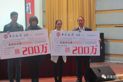 在頒獎儀式現(xiàn)場,“雙童”樓仲平現(xiàn)場公布一個令全場沸騰的決定年底將把獎學(xué)金基金增加為800萬元,以幫助更多優(yōu)秀的莘莘學(xué)子!