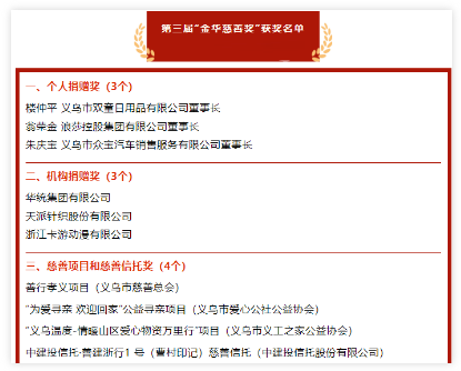 第三屆“金華慈善獎”部分名單