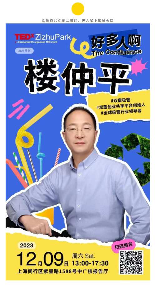 本次TED演講將在上海舉行,就在12月9日!為了讓大家不錯(cuò)過,吸管妞提前給大家準(zhǔn)備好了線下報(bào)名通道想要現(xiàn)場觀看的朋友們快掃碼報(bào)名吧!