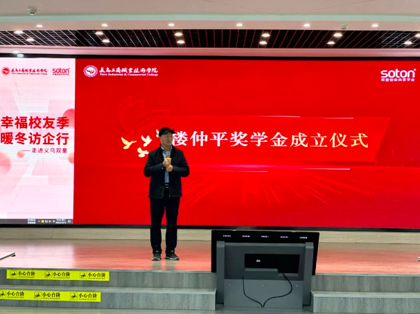 12月12日,義烏工商職業(yè)技術(shù)學(xué)院舉行“幸福校友季·暖冬訪企行”系列活動(dòng),校黨委書記李昌祖一行走進(jìn)“雙童”深入調(diào)研,并舉行教育基金捐贈(zèng)儀式和【樓仲平獎(jiǎng)學(xué)金】設(shè)立儀式!
