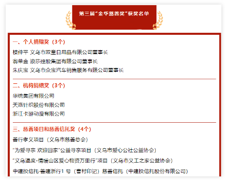 第三屆“金華慈善獎(jiǎng)”部分名單