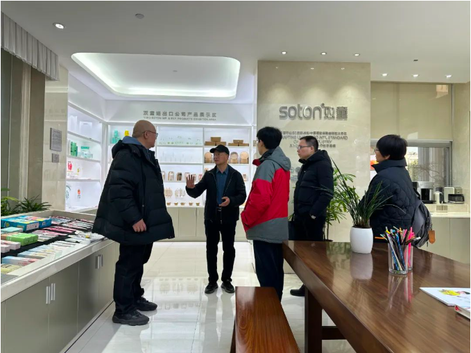 調(diào)研團(tuán)身后展示的是雙童其他創(chuàng)業(yè)體的非吸管產(chǎn)品!
