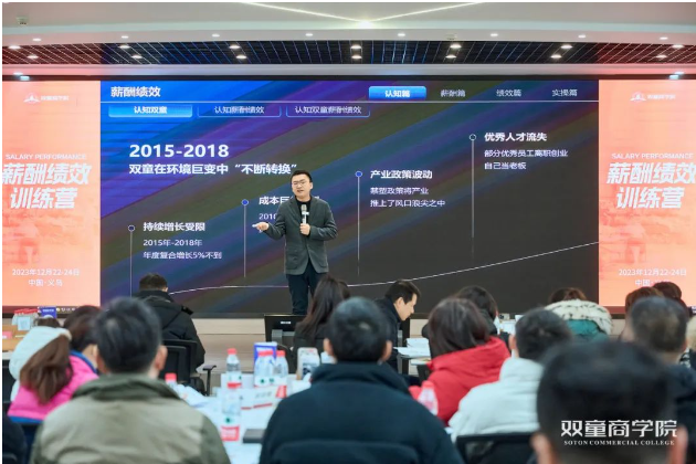 當(dāng)學(xué)員們看到“雙童”各個(gè)崗位都有完善的薪酬體系時(shí),便強(qiáng)烈建議增設(shè)一個(gè)專門(mén)針對(duì)性的課程,賦能更多中小企業(yè)搭建公平合理的薪酬績(jī)效體系!故,雙童商學(xué)院特邀實(shí)戰(zhàn)派講師雙童日用品總經(jīng)理李二橋及管理團(tuán)隊(duì),推出了「薪酬績(jī)效訓(xùn)練營(yíng)」!