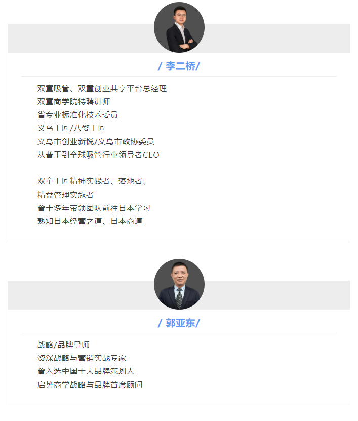 所以,2024年4月21日,雙童研學(xué)中心誠邀各位企業(yè)家朋友與雙童總經(jīng)理李二橋一起,走進(jìn)世界500強(qiáng)企業(yè)、百年長壽企業(yè)、專精特新企業(yè),全方面學(xué)習(xí)優(yōu)秀經(jīng)營理念,助力企業(yè)成長!