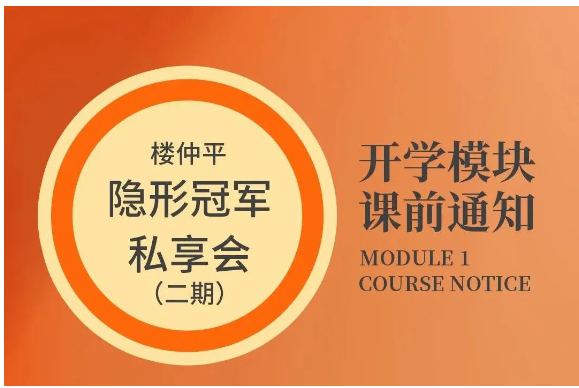 「樓仲平隱形冠軍私享會」全課程共分為“破圈”、“取舍”、“進化”、“案例”、“出發(fā)”、“開悟”、“進化”7大主題模塊,根據(jù)各模塊不同課程主題,課研組每期都會邀請到一位飛行嘉賓與樓仲平老師共同完成課程交付!