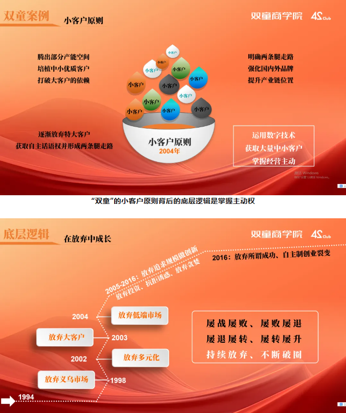 經(jīng)濟(jì)市場瞬息萬變,一根小吸管如何在數(shù)字化浪潮下獲得長足的發(fā)展?創(chuàng)始人樓仲平逐步放棄過往積累的特大客戶,轉(zhuǎn)而實行更有自主性的“小客戶原則”。 樓仲平老師還分享了“雙童”不斷“開門”破圈形成的獨特競爭策略和戰(zhàn)略定位。