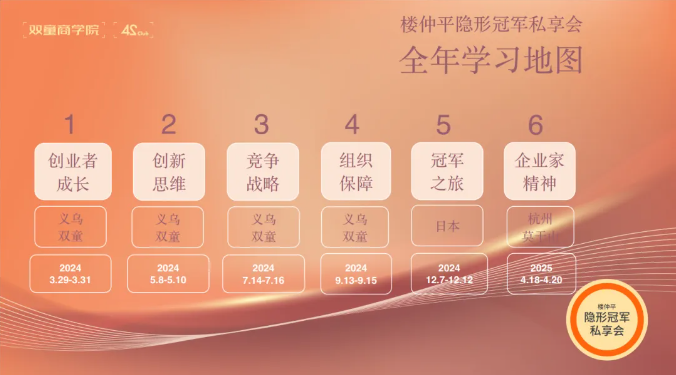 在之后的一年時間里,樓仲平老師會將自己40多年的創(chuàng)業(yè)經(jīng)歷和30多年的管理學(xué)功底內(nèi)化成系統(tǒng)的知識,全程陪伴,推動創(chuàng)業(yè)者持續(xù)成長,鍛煉弟子班學(xué)員不斷開門、破圈的能力!