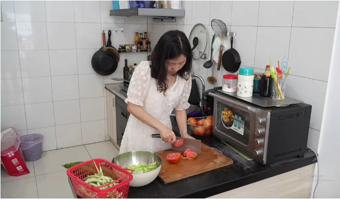 將剛剛采摘下來的黃瓜、西紅柿、豆角,清洗、去皮切塊、翻炒,不一會,一盤接一盤超新鮮的炒時(shí)蔬就被端上餐桌了,看著相當(dāng)美味!而且,這些蔬菜全都是純天然無公害的,吃起來非常安心,蔬菜本身的味道也更加濃郁!