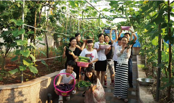 相信不少人讀書時(shí)都曾覺得魯迅筆下的“百草園”非常有趣吧,其實(shí)“雙童”也有自己的“百草園”。這個(gè)季節(jié)的雙童空中生態(tài)園滿是“紫紅的桑葚”和各色的小果子,而長在員工宿舍樓頂?shù)目罩胁藞@則是一片“碧綠的菜畦”,瓜果飄香。