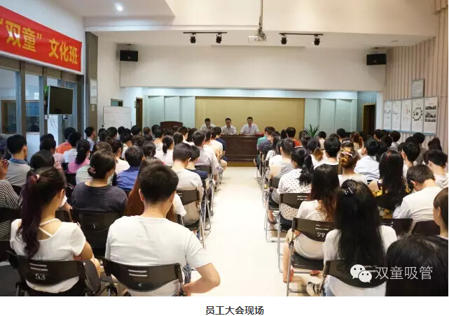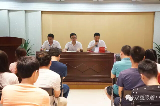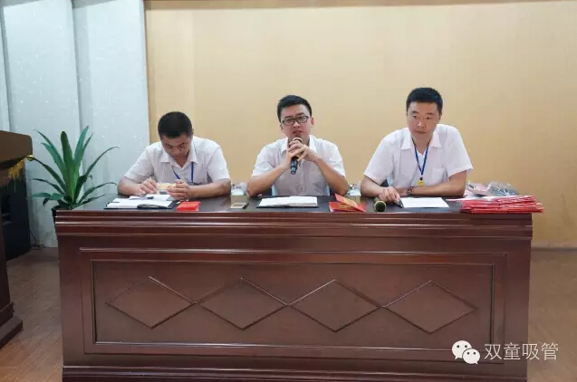 716日,雙童九樓閣熱鬧極了!原來我們雙童吸管在舉辦2016年第二季度的員工大會呢!我們的高層三巨頭總經(jīng)理李總、吳副總、李廠長出席了這場大會。
