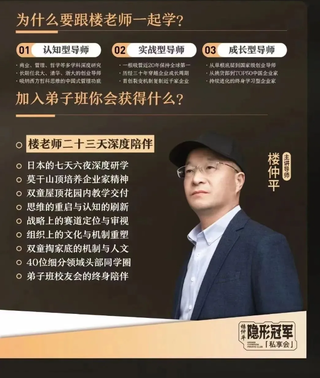 如果你是創(chuàng)業(yè)者、學習者、思想者,希望在經(jīng)營領(lǐng)域有自己的思考和洞察,那么樓仲平【弟子班】就是為你量身定制,今年最后一期招生,一班只招40位同學,名額所剩不多,抓緊機會哦!