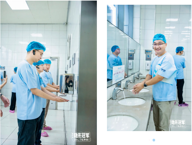 進(jìn)車間前,大家就感受到了車間管理的精細(xì)化,僅是進(jìn)入車間的動作,就有6個步驟!