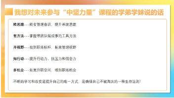 在完成了思維有高度、帶人有溫度、做事有力度三個模塊課程學(xué)習(xí)后,【中堅力量】將最后的落腳點放在了“成長有速度”