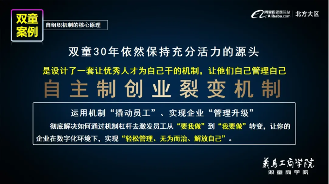 面對數(shù)字化挑戰(zhàn),“雙童”決定結(jié)合多種組織機制和中小企業(yè)的特點,自制了一套適用于中小企業(yè)的組織創(chuàng)新制度——自主制創(chuàng)業(yè)裂變機制,讓員工從“要我做”到“我要做”轉(zhuǎn)變。