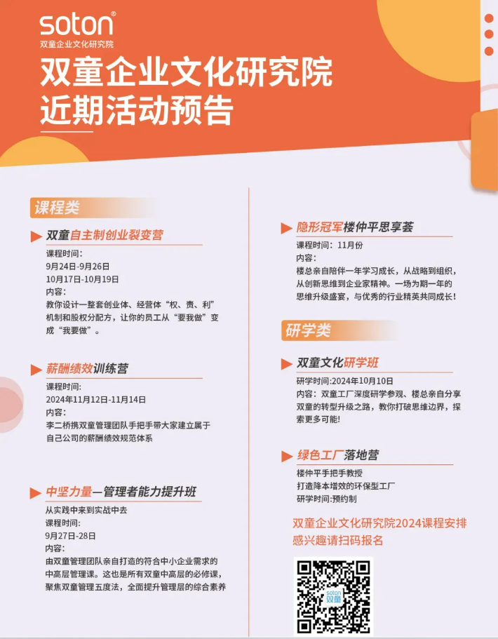 為了助力更多中小企業(yè)也能運(yùn)用這套機(jī)制實(shí)現(xiàn)快速增長(zhǎng),早在2022年,雙童商學(xué)院就針對(duì)該機(jī)制打磨成《自主制創(chuàng)業(yè)裂變營(yíng)》課程。