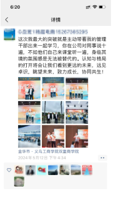 同時,他還告訴在場學(xué)員真正的管理是激發(fā)員工的善意,管理者要試著學(xué)會正向引導(dǎo)員工的優(yōu)點,從而用他人所長、借力發(fā)揮,提高管理效能!但他也提醒學(xué)員要給予員工及時的“增值奉還”,從而實現(xiàn)上下同欲、協(xié)同創(chuàng)造。