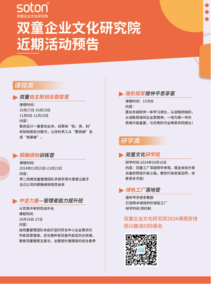這些經(jīng)歷雖然沒有帶給他物質(zhì)生活的改變,卻讓他練就了一身“皮糙肉厚”的創(chuàng)業(yè)韌性,這種特質(zhì)也潛移默化的影響了“雙童”這個(gè)企業(yè),讓他能夠在之后的30年,屢敗屢戰(zhàn)、屢轉(zhuǎn)屢升,穿越一個(gè)個(gè)難熬的周期。