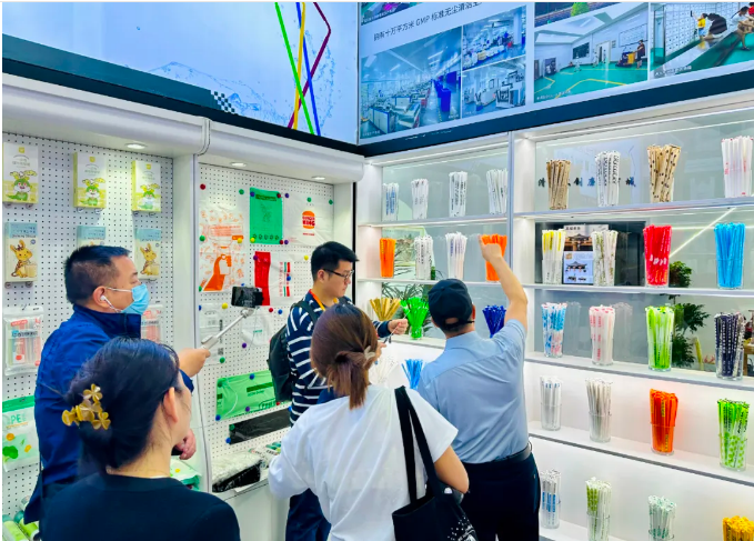走過(guò)繁忙和充滿活力的雙童展位現(xiàn)場(chǎng),展位內(nèi)柜前豐富多彩的吸管映入眼簾,稱此展位為“迷你吸管博物館”亦恰如其分。而在眾多展品中,“雙童”在此次義博會(huì)上推出的可降解吸管系列尤為亮眼,備受中外客戶的青睞與好評(píng)!