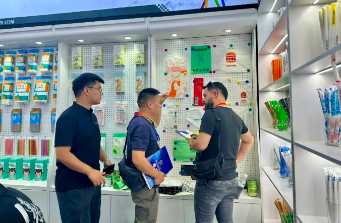 然而,“雙童”的足跡已不再局限于單一的吸管領(lǐng)域。本次義博會(huì)還帶來(lái)了“雙童”的可降解膜袋、創(chuàng)新吸管、塑料口杯、PE手套及垃圾袋等一系列環(huán)保產(chǎn)品。