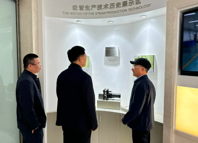 在“雙童”創(chuàng)始人樓仲平的陪同下,廣州市委統(tǒng)戰(zhàn)部領導一行走進中國吸管博物館,一同參觀了吸管產(chǎn)品發(fā)展歷史展示區(qū)、吸管生產(chǎn)技術展示區(qū)、吸管產(chǎn)品形態(tài)展示區(qū)等各類吸管的展示區(qū)域,了解吸管產(chǎn)業(yè)的發(fā)展與變遷。