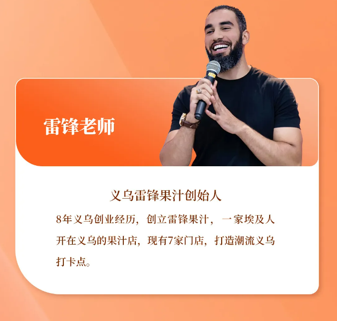 2)來(lái)自埃及的國(guó)際友人雷鋒老師,將帶來(lái)他在異國(guó)他鄉(xiāng)的創(chuàng)業(yè)故事,讓學(xué)員們能從一個(gè)全新的視角去看待創(chuàng)業(yè)這件事情。