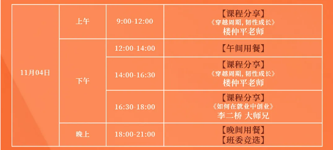 《創(chuàng)業(yè)者成長(zhǎng)》作為樓仲平弟子班的啟動(dòng)模塊,將用時(shí)4天3晚完成交付,旨在深度挖掘“雙童”近30年的成長(zhǎng)歷程背后創(chuàng)始人樓仲平的成長(zhǎng)方式,從而樓老師的思維與認(rèn)知遷移到學(xué)員自身的成長(zhǎng)和所在企業(yè)的成長(zhǎng)上。