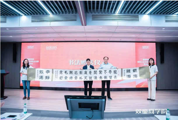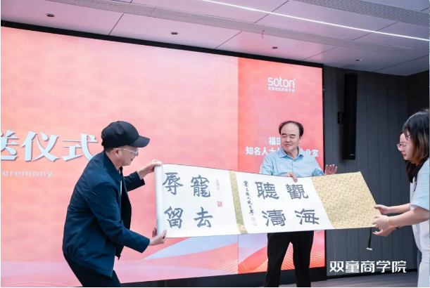 在鄉(xiāng)賢交流中,福田街道與雙童還進(jìn)行了書法佳作的贈(zèng)送儀式。