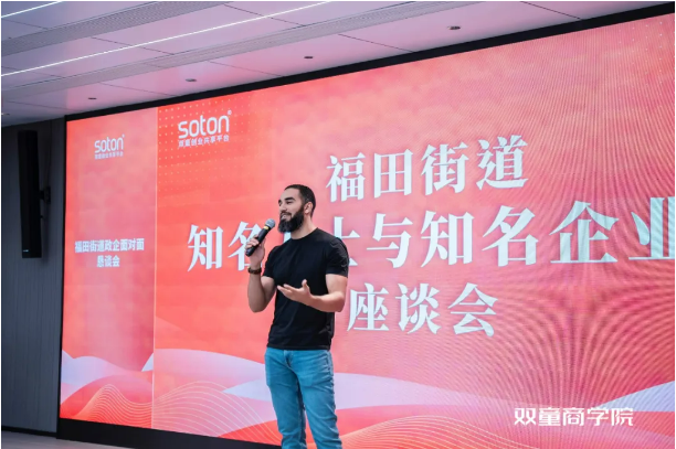 座談會(huì)的最后階段,作為福田街道杰出的企業(yè)家代表,來自埃及的雷鋒果汁創(chuàng)始人穆罕默德從自身企業(yè)經(jīng)營狀況出發(fā),圍繞產(chǎn)品創(chuàng)新、銷售模式等話題發(fā)表了自己的經(jīng)驗(yàn)看法。