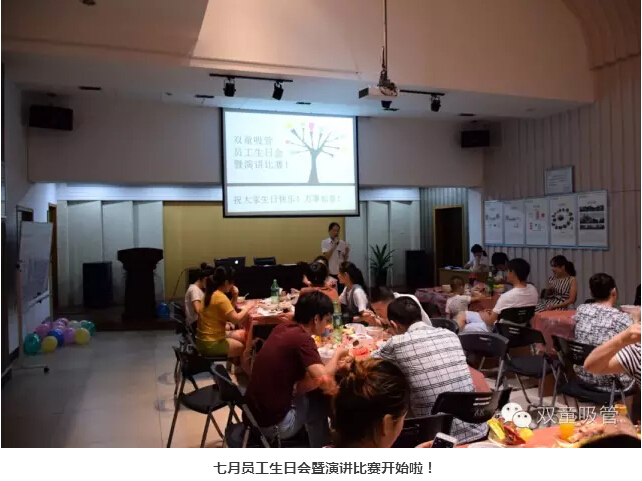 演講結(jié)束后,大家進行著各個環(huán)節(jié),唱生日歌、吹蠟燭、切蛋糕!我們每月的生日會都傾注了公司對員工的親切關(guān)愛,讓大家都以“雙童”為家,齊心協(xié)力同公司一同成長!