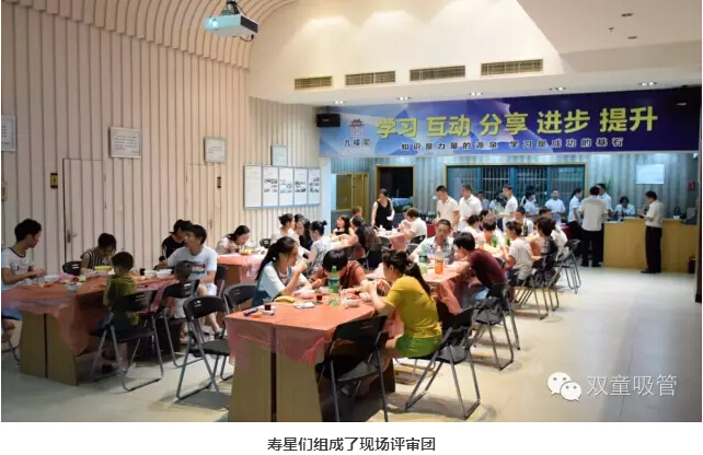 所有壽星們組成了現(xiàn)場評審團,行使評委的權(quán)利,為即將登場的14位演講比賽選手給出自己最公正的分數(shù)!