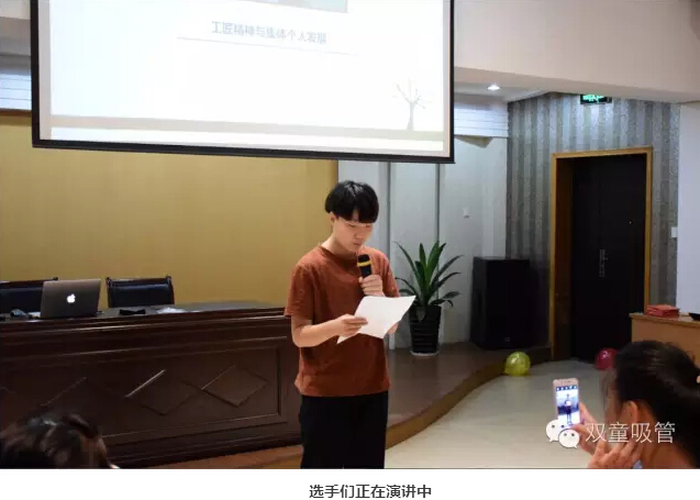 這次演講也吸引了不少暑期來“雙童”社會實踐的大學生們,瞧!這一位同學通過自身對“匠心”的理解,告訴大家堅持的重要性,在自己的崗位上做精做強,認準目標,絕不妥協(xié)和放棄!慷慨激昂的演講贏得了在場觀眾們一陣陣的掌聲!
