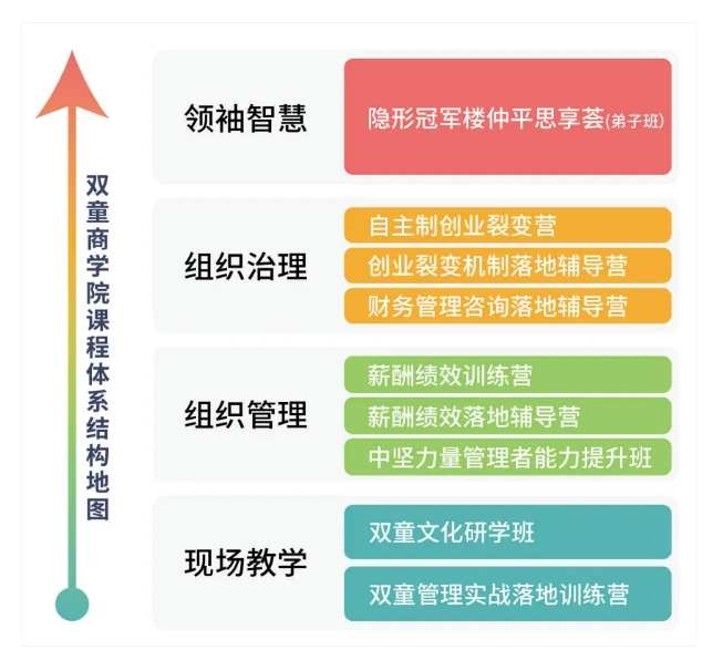 作為實(shí)戰(zhàn)類創(chuàng)業(yè)教育培訓(xùn)的頭部商學(xué)院,除《自主制創(chuàng)業(yè)裂變營》外,雙童商學(xué)院精心打造了一套以思維升級為驅(qū)動、以實(shí)戰(zhàn)落地為導(dǎo)向的課程體系,旨在為中小民營企業(yè)提供最具實(shí)效性的課程體驗(yàn)。