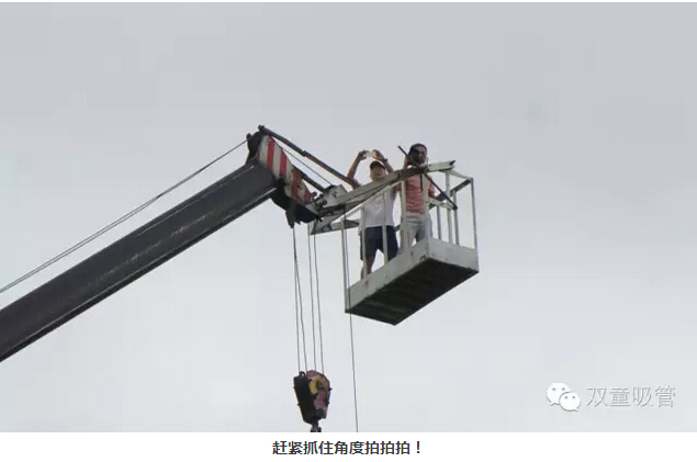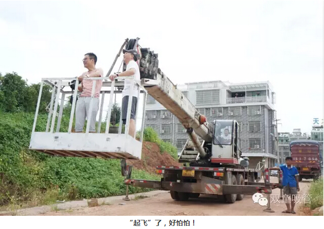 周一的清晨,當家人樓總早早地就來到了公司,而在公司門口,還停著一輛大吊機!用吸管君的話說,這是要搞事情?。」?,不一會兒,幾個拿著專業(yè)攝影機的攝影師也來到了公司,大家伙一起來到了“雙童”的斜對面,當家人說,我們要隔著北苑路這條大馬路,借助近50米高的大吊機,拍攝“雙童”廠房全景!