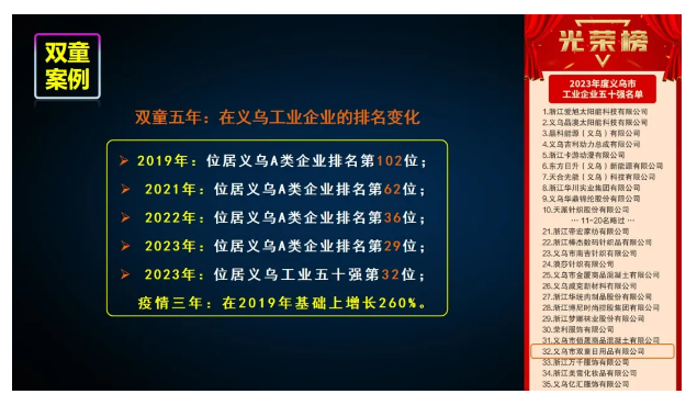 目前已形成了以吸管制造業(yè)為基礎(chǔ),以國際貿(mào)易和創(chuàng)業(yè)教育兩大板塊為融合的新的產(chǎn)業(yè)模式,做到了輕重結(jié)合、虛擬結(jié)合,不僅讓雙童業(yè)績實(shí)現(xiàn)連年攀升,增強(qiáng)了企業(yè)的活力和反脆弱性,同時實(shí)現(xiàn)了企業(yè)和員工的共同富裕!