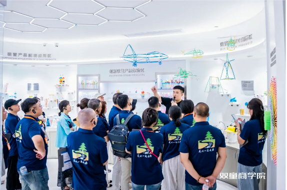 樓總向?qū)W員們介紹道:面對當下越來越卷的行業(yè)競爭,他毅然帶領(lǐng)雙童突破“一根吸管”的局限,突破路徑依賴,打開組織邊界,進行破界創(chuàng)新,鼓勵雙童員工拓展“第二曲線”,并在2018年出資為員工搭建了創(chuàng)業(yè)共享平臺,激發(fā)員工積極性,實現(xiàn)共同富裕!