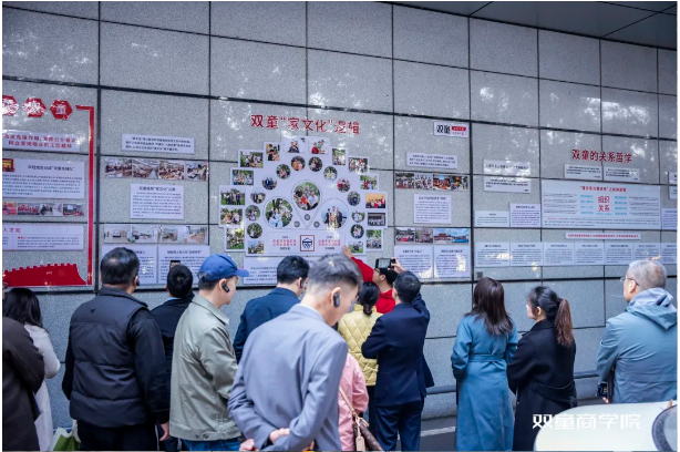 百米文化長廊,用文字與圖片記錄“雙童”不同階段的生長。學員們從這面墻上可以溯源“雙童”的前世今生;了解義烏市場的風云變幻和董事長樓仲平的創(chuàng)業(yè)故事,以及“雙童”成長歷程與經(jīng)營文化、理念等內(nèi)容,情節(jié)跌宕起伏,妙趣橫生。